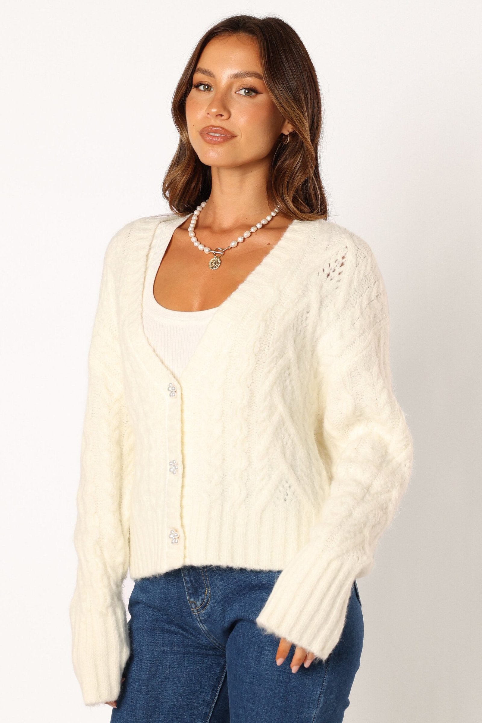 Crystal Button Cardigan – Cream