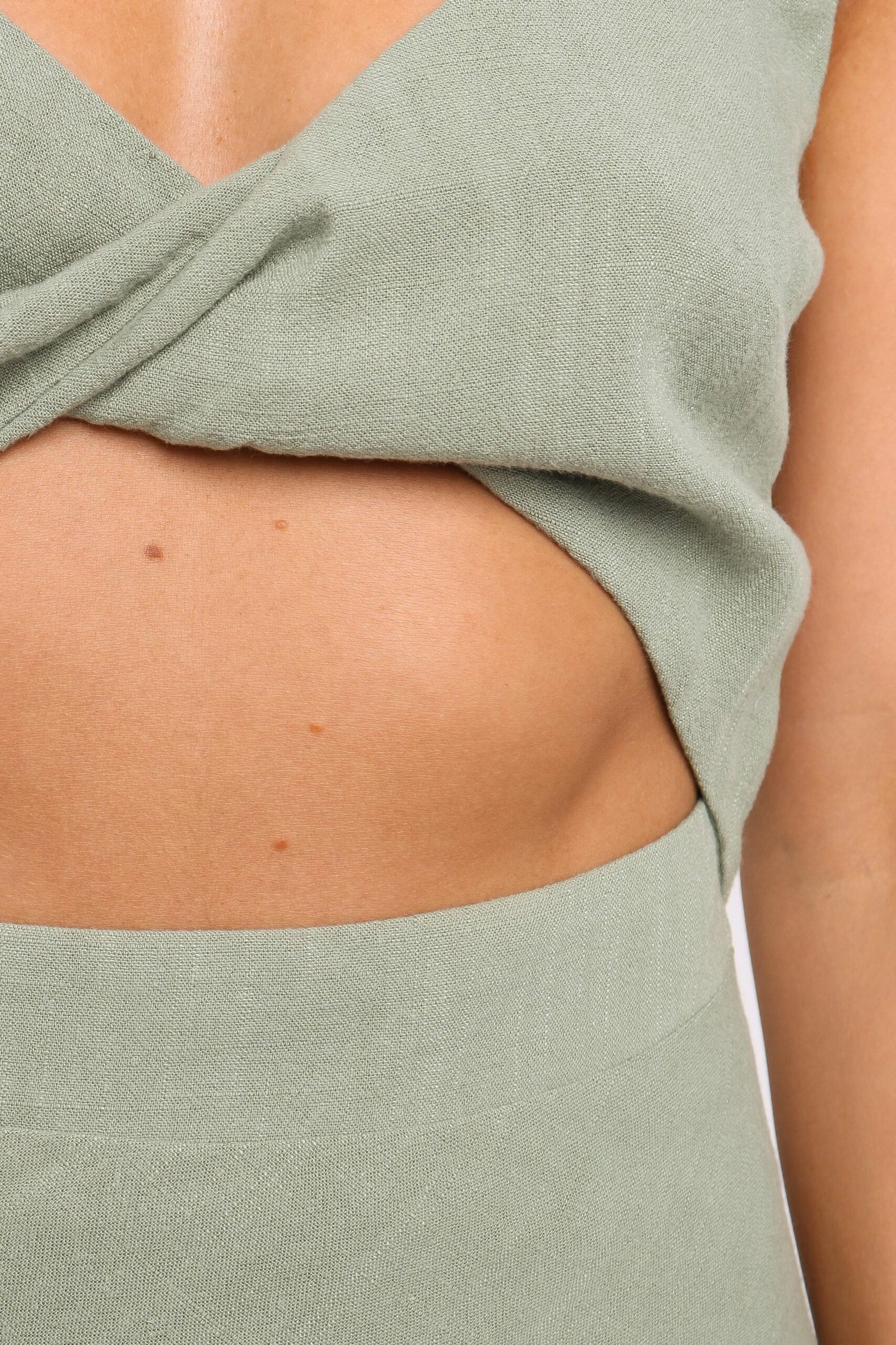 Take your style to new heights in this chic midi length dress! The flattering v neckline creates a timeless silhouette while the bust twist detail with cut out feature adds a touch of glamor. For an extra bit of security, the dress is finished off with a hook and eye clasp and invisible back zip.