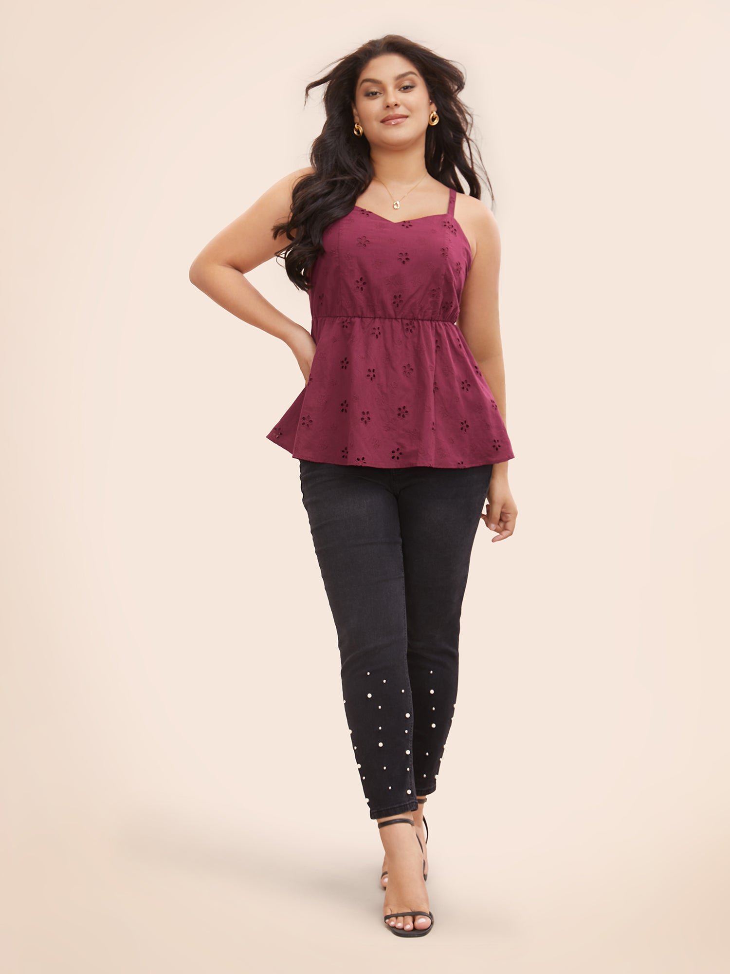 Broderie Anglaise Adjustable Straps Cami Top