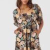 Easy and stylish woven jumpsuit that has a flowy wide leg fit, allover print and smocking detail.