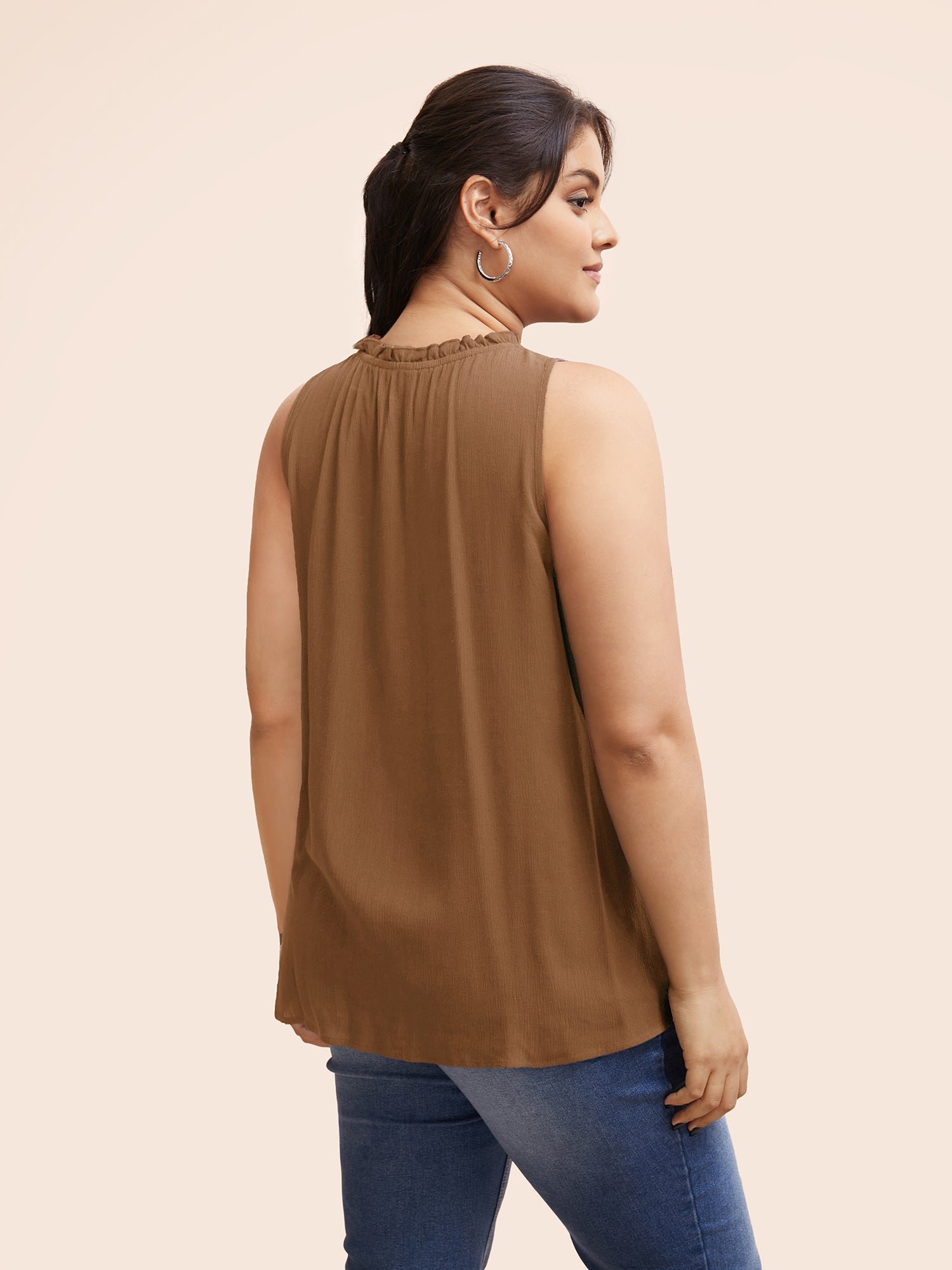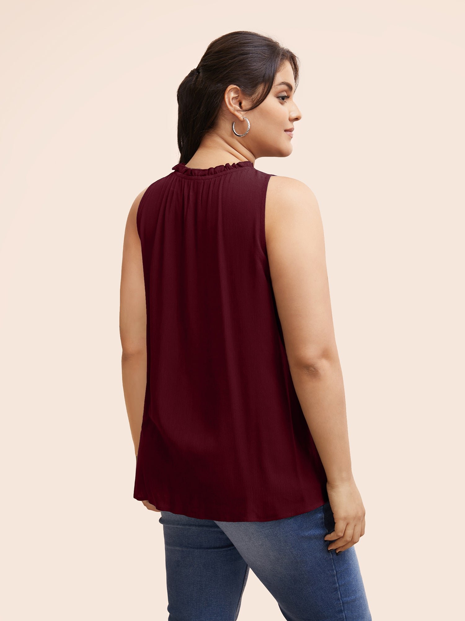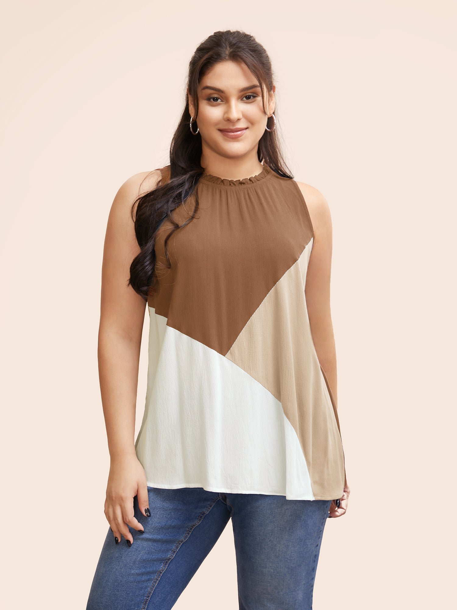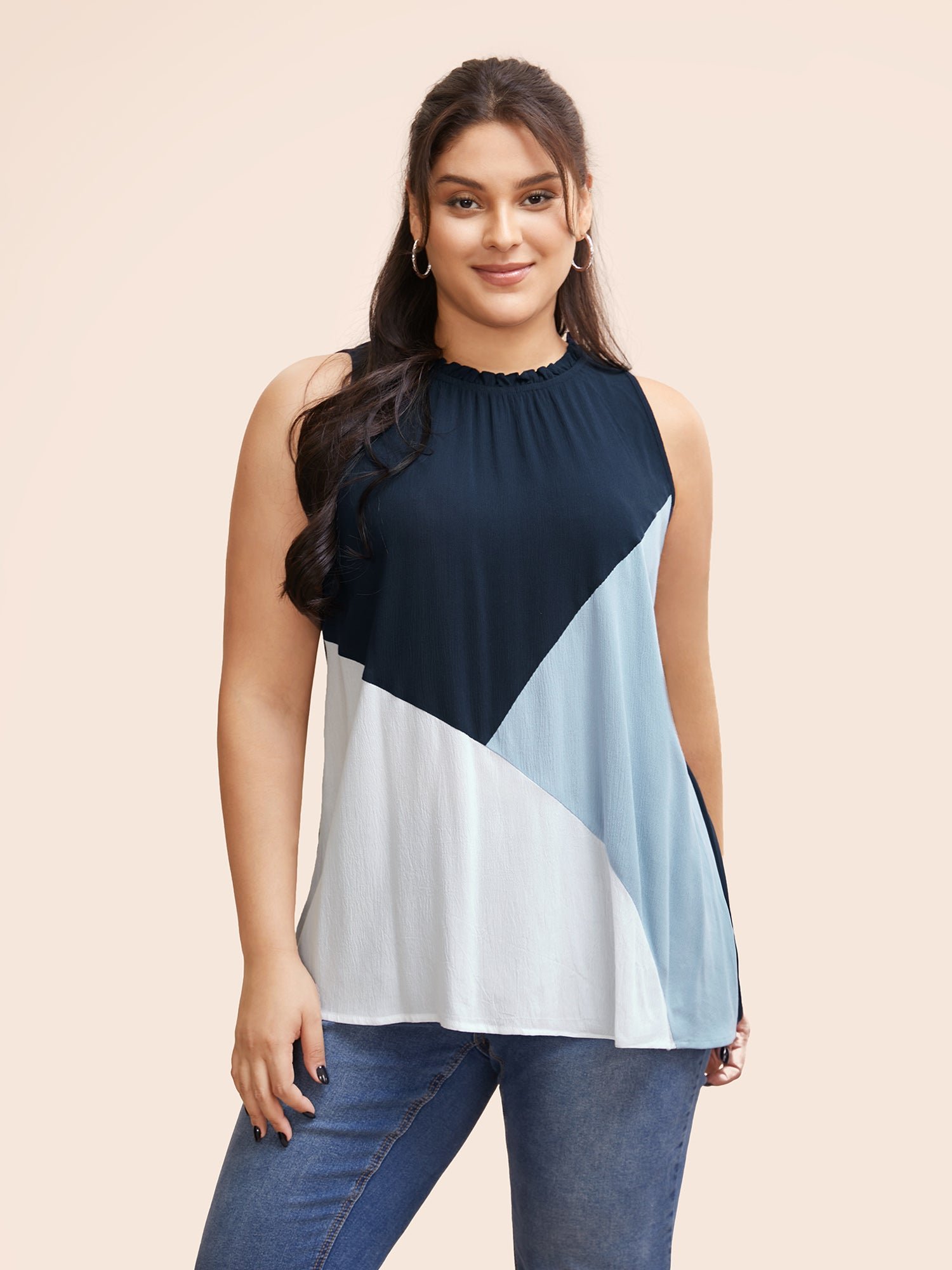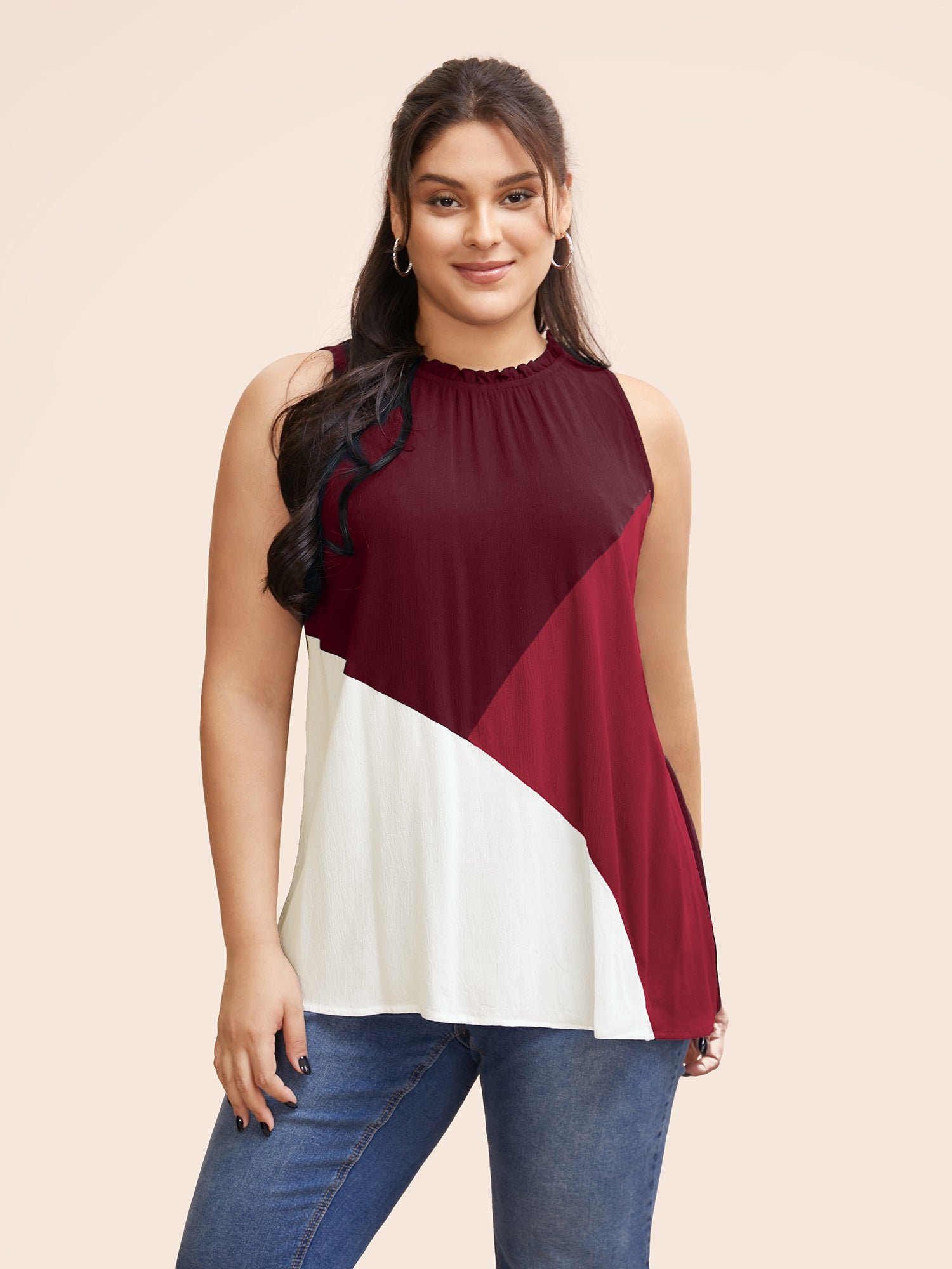 Colorblock Contrast Frill Trim Gathered Tank Top