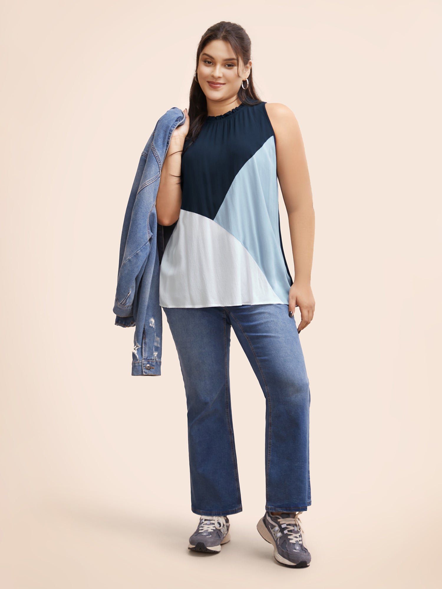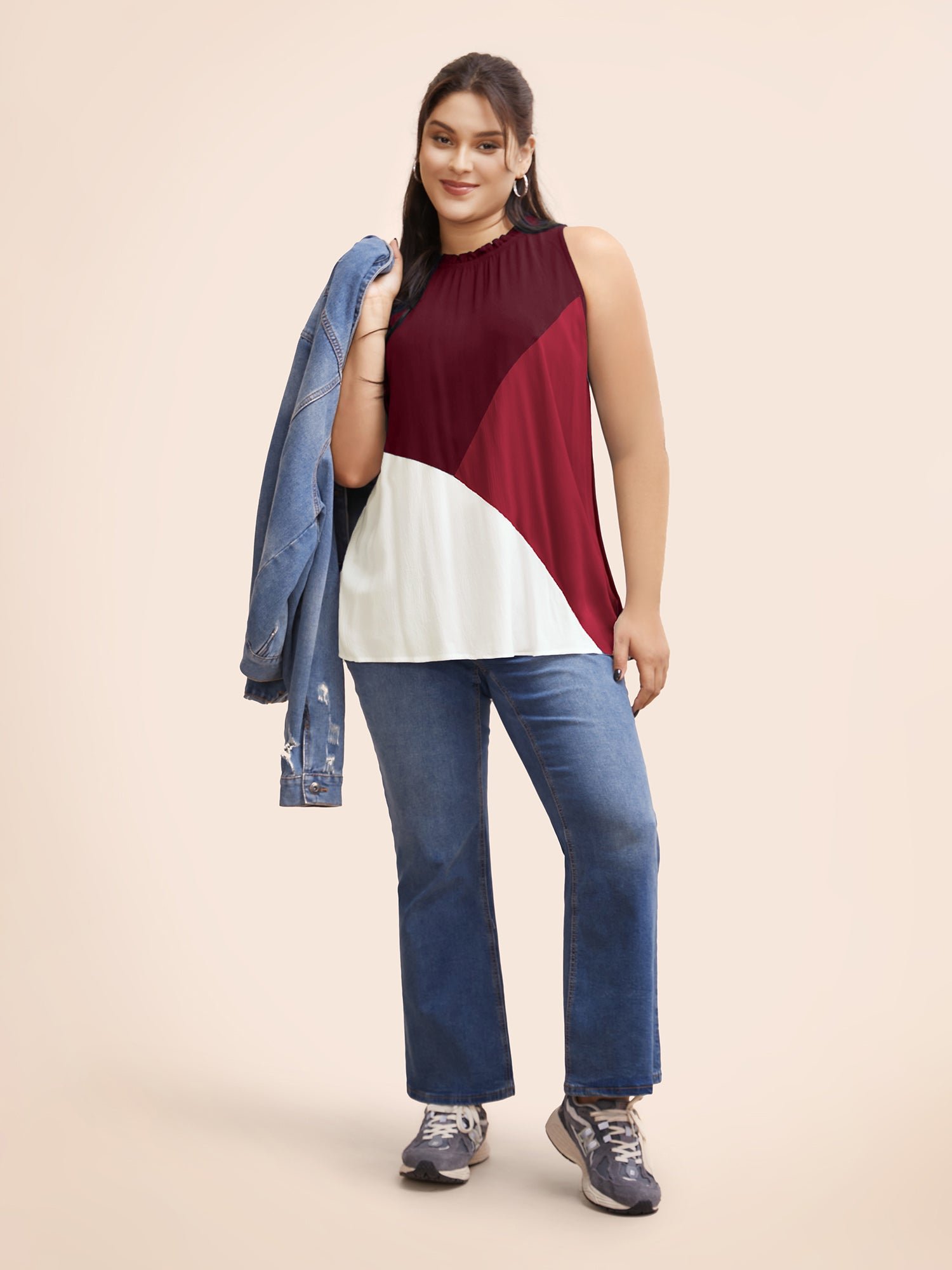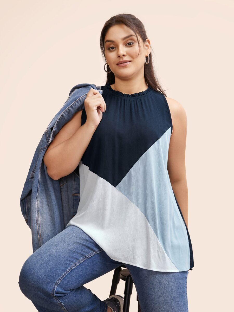 Be the first to review “Colorblock Contrast Frill Trim Gathered Tank Top”
