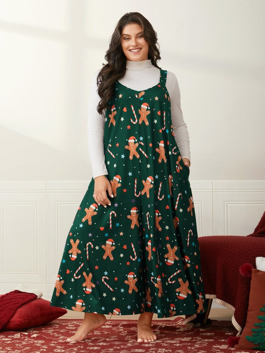 Festive Knit Print U Neck Lounge Jumpsuit