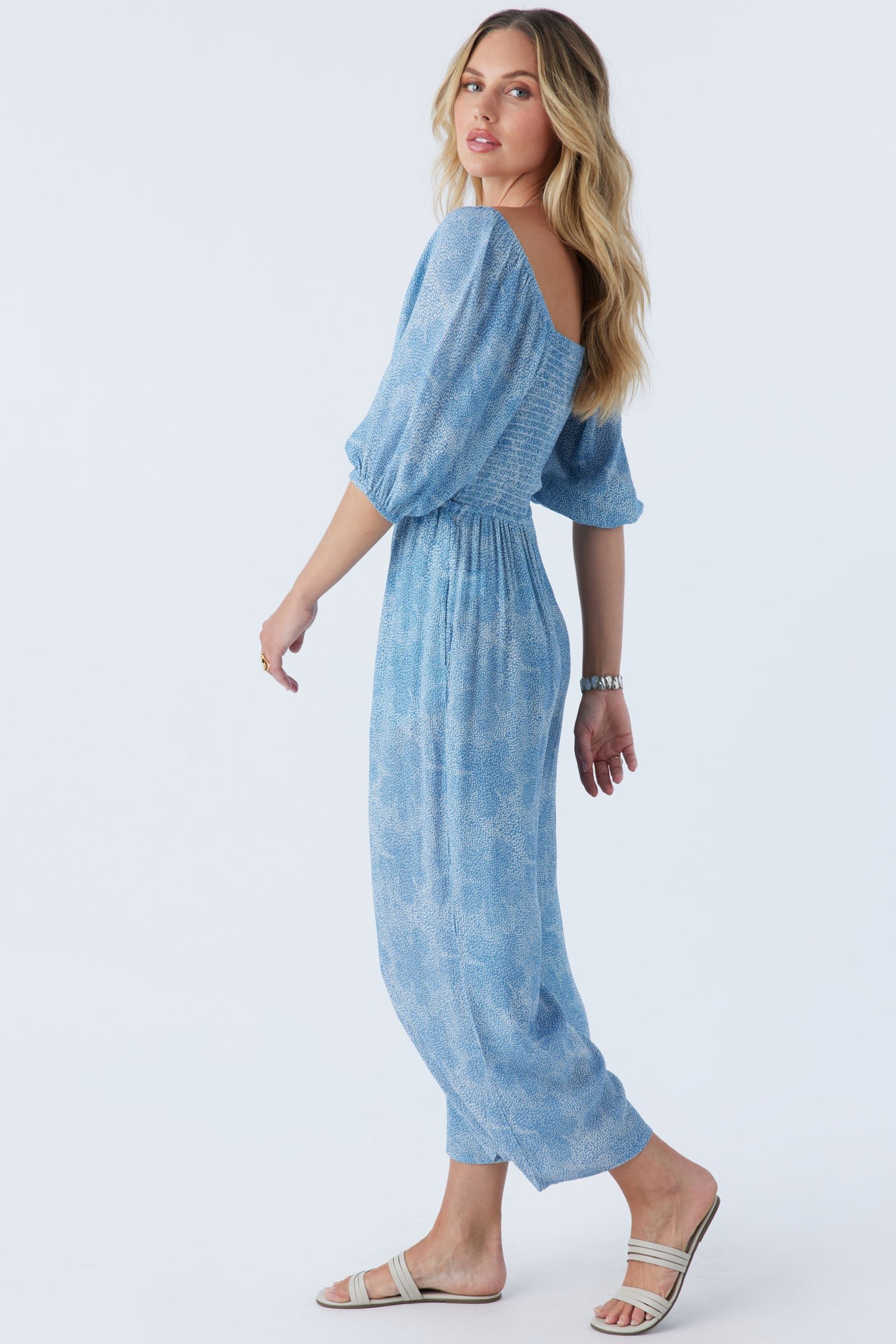 So cute woven short sleeve jumper that features a front wrap design, allover print and relaxed fit.