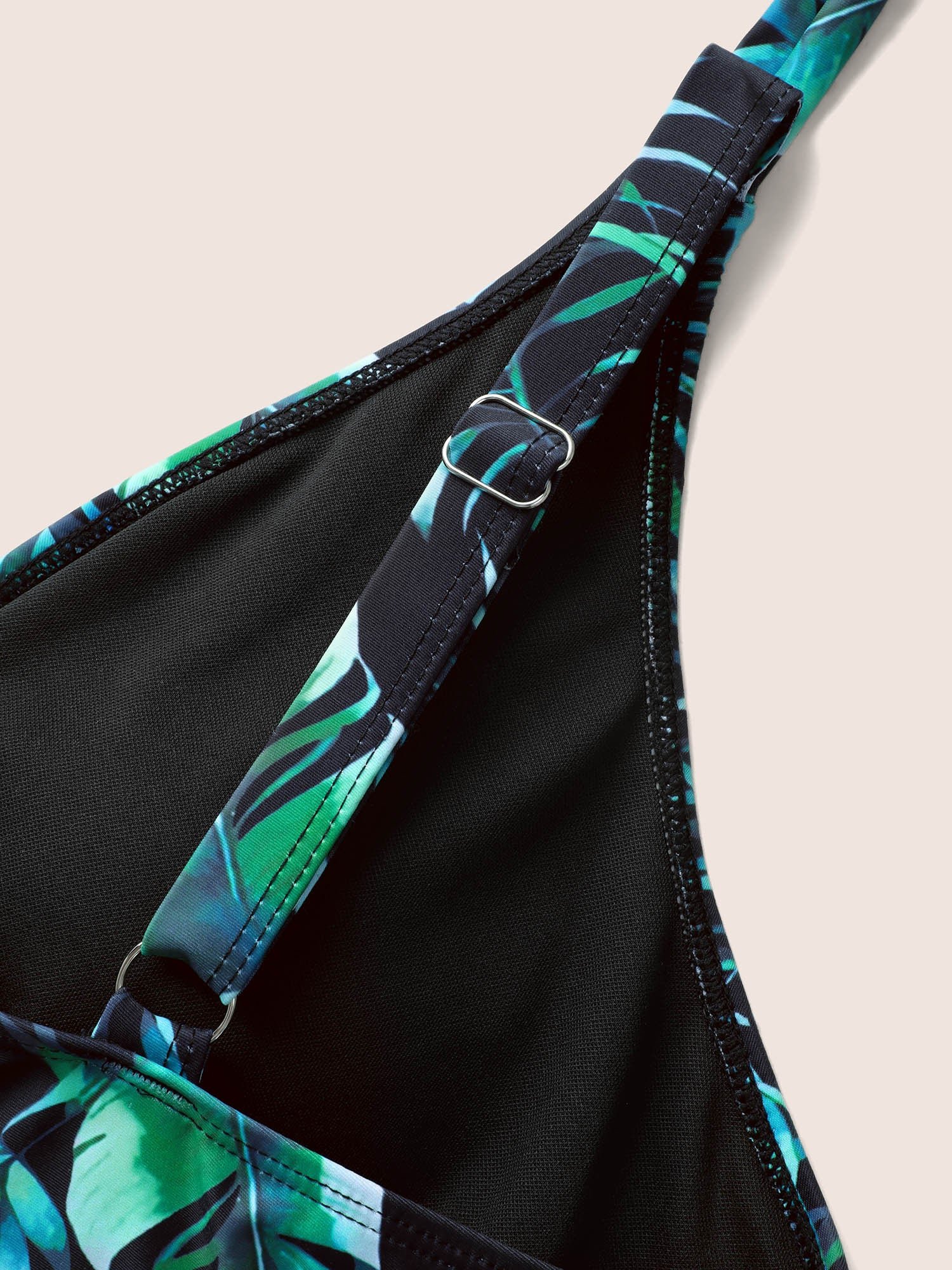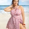 Overlap Collar Tropical Print Mesh Tie Knot Swim Dress