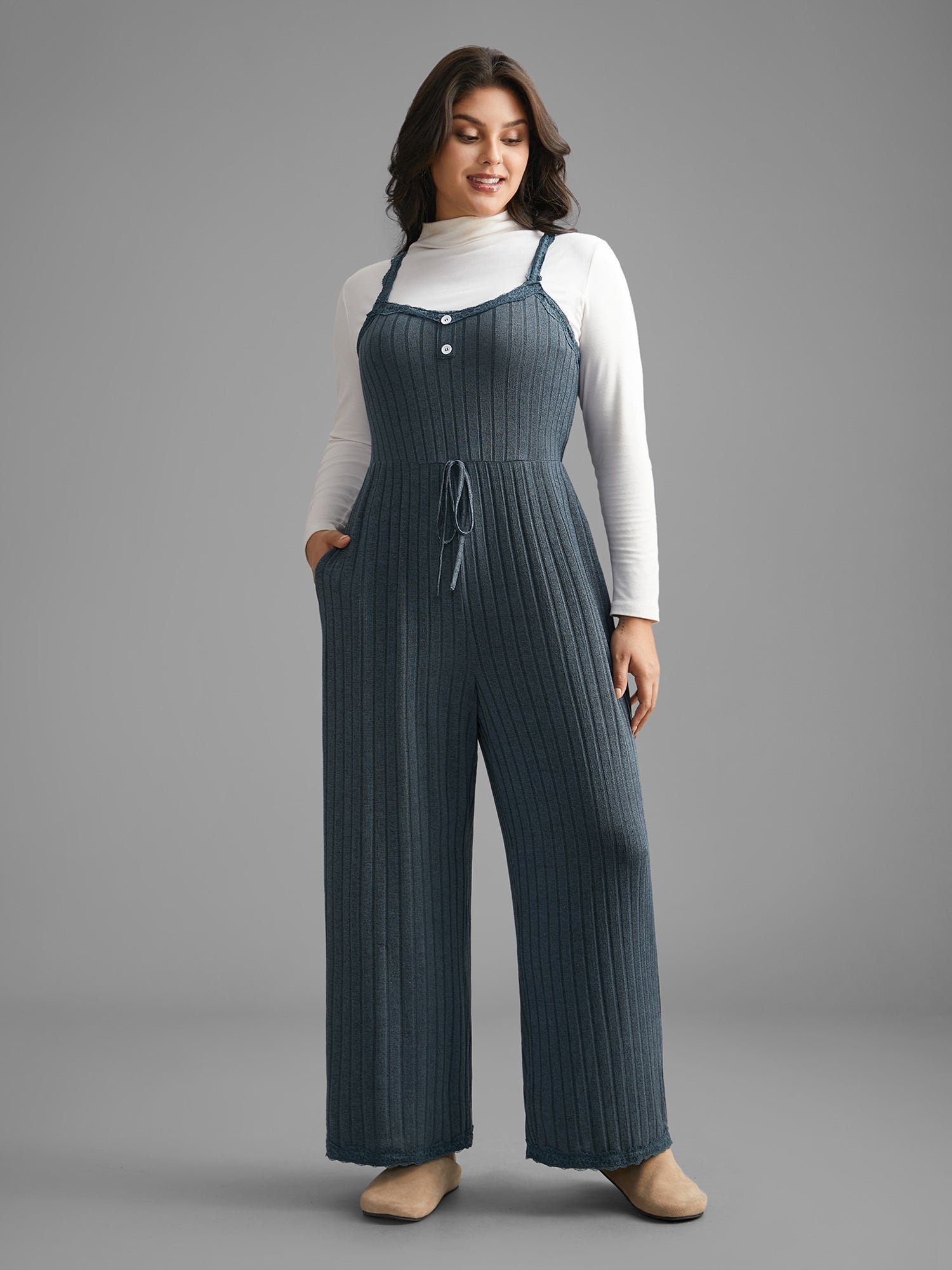 Plain Lace Patchwork Tie Knot Lounge Jumpsuit