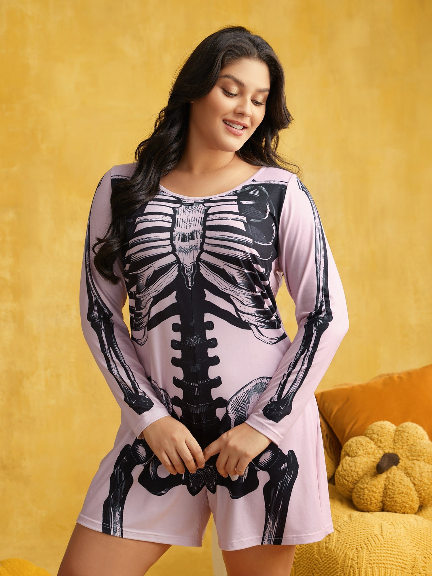 Skeleton Printed Straight Fit Mini Jumpsuit