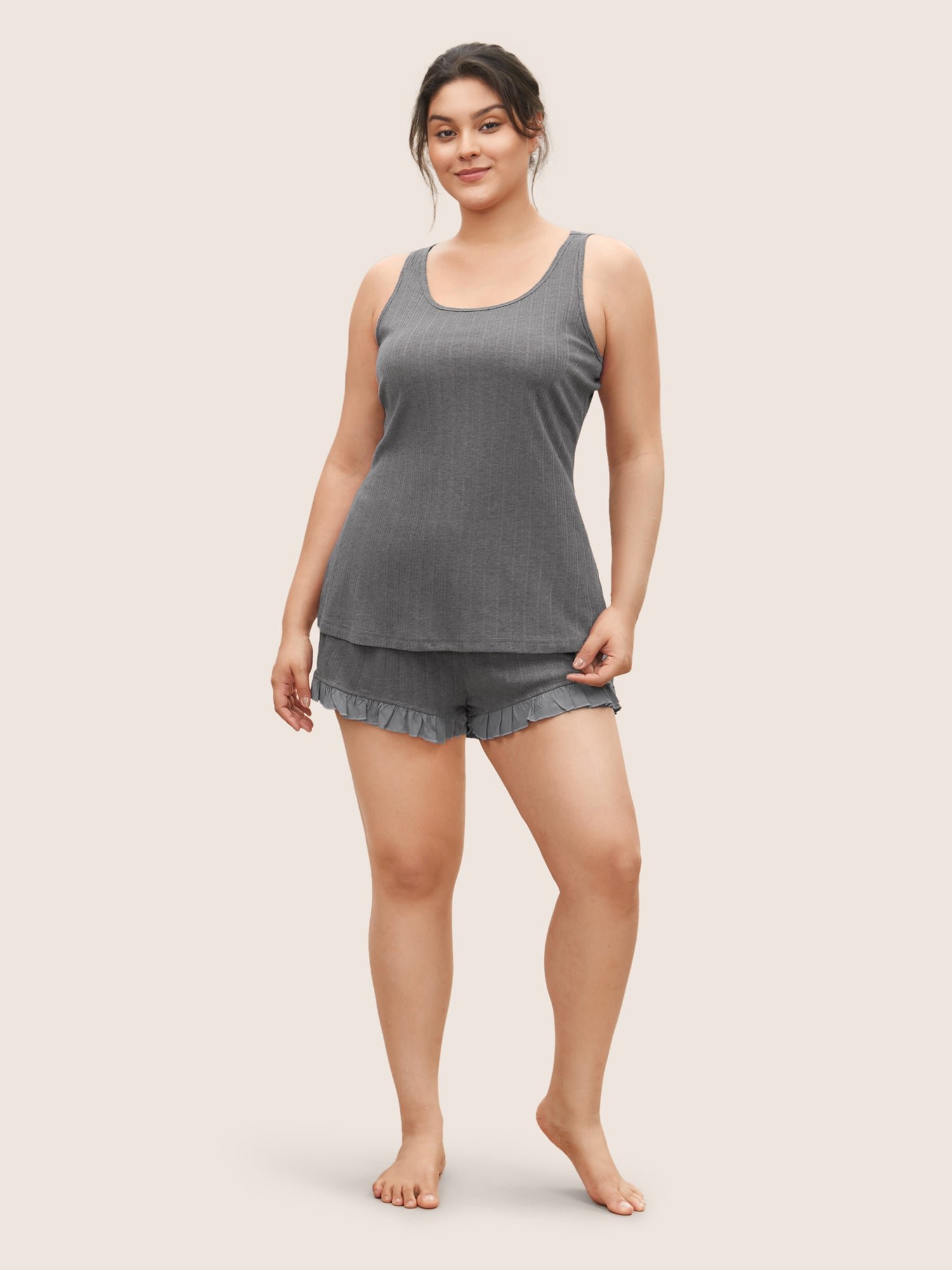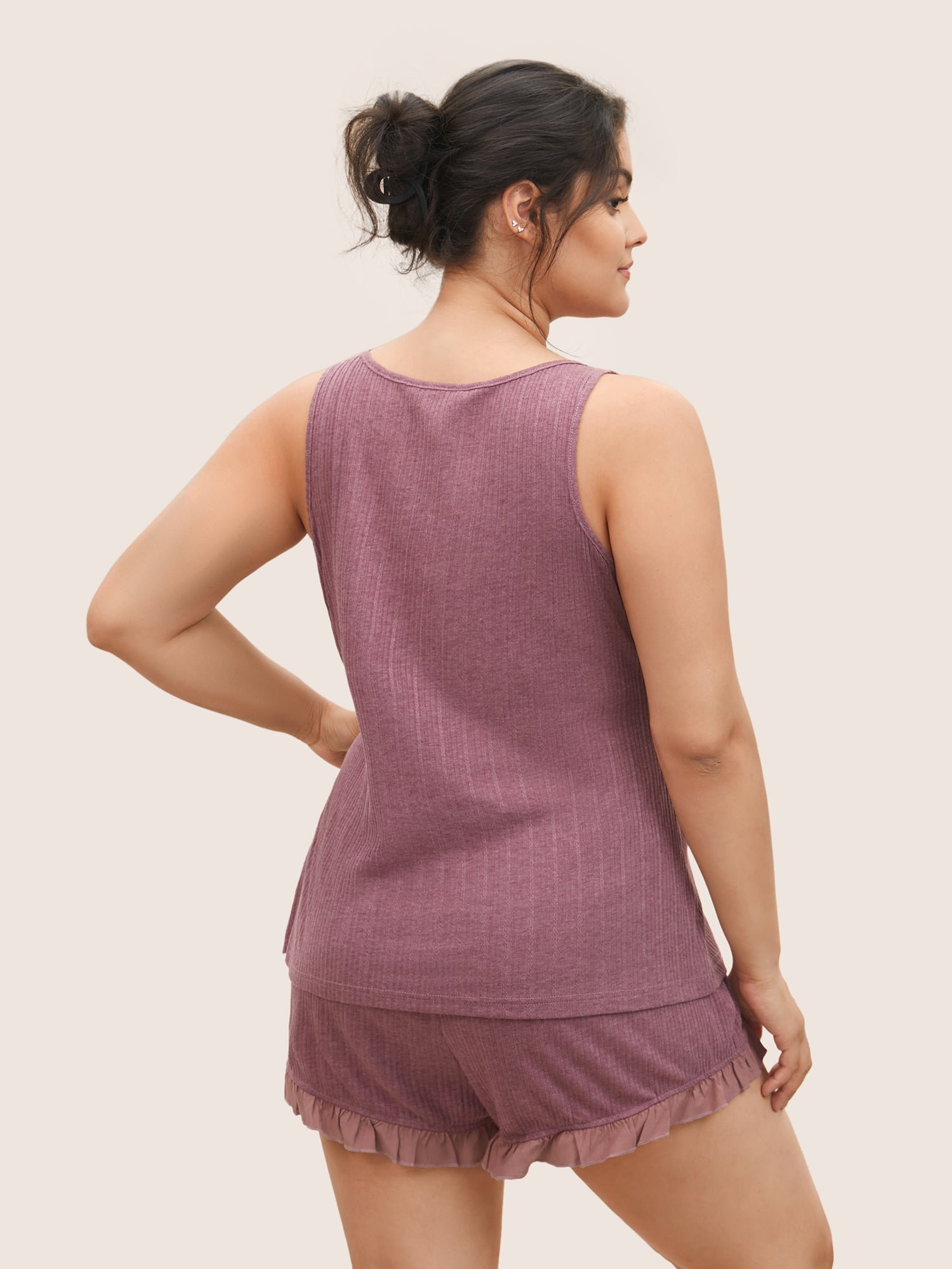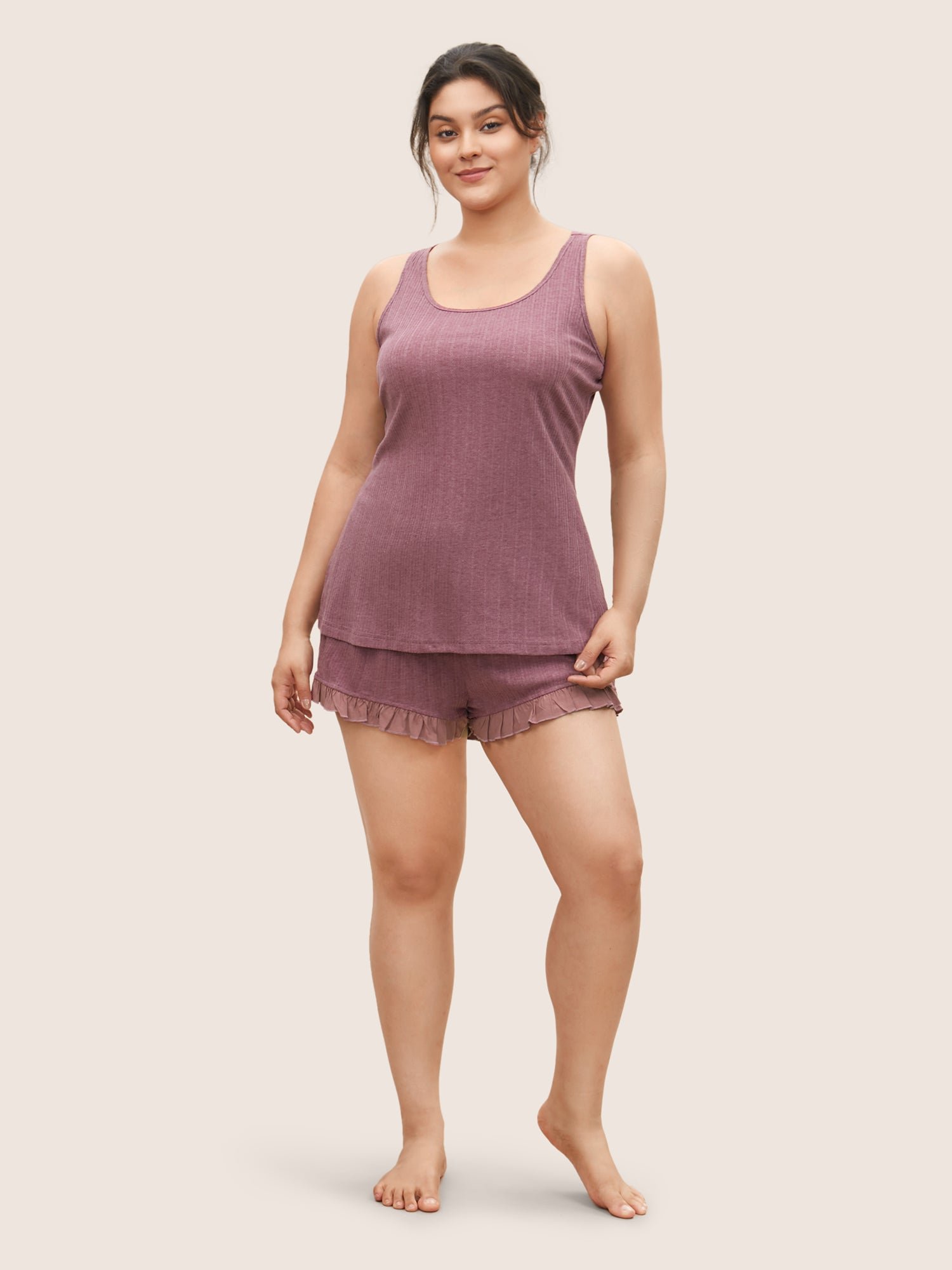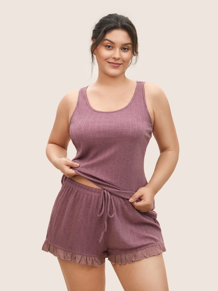 Texture Patchwork Ruffles Drawstring Loungewear Set