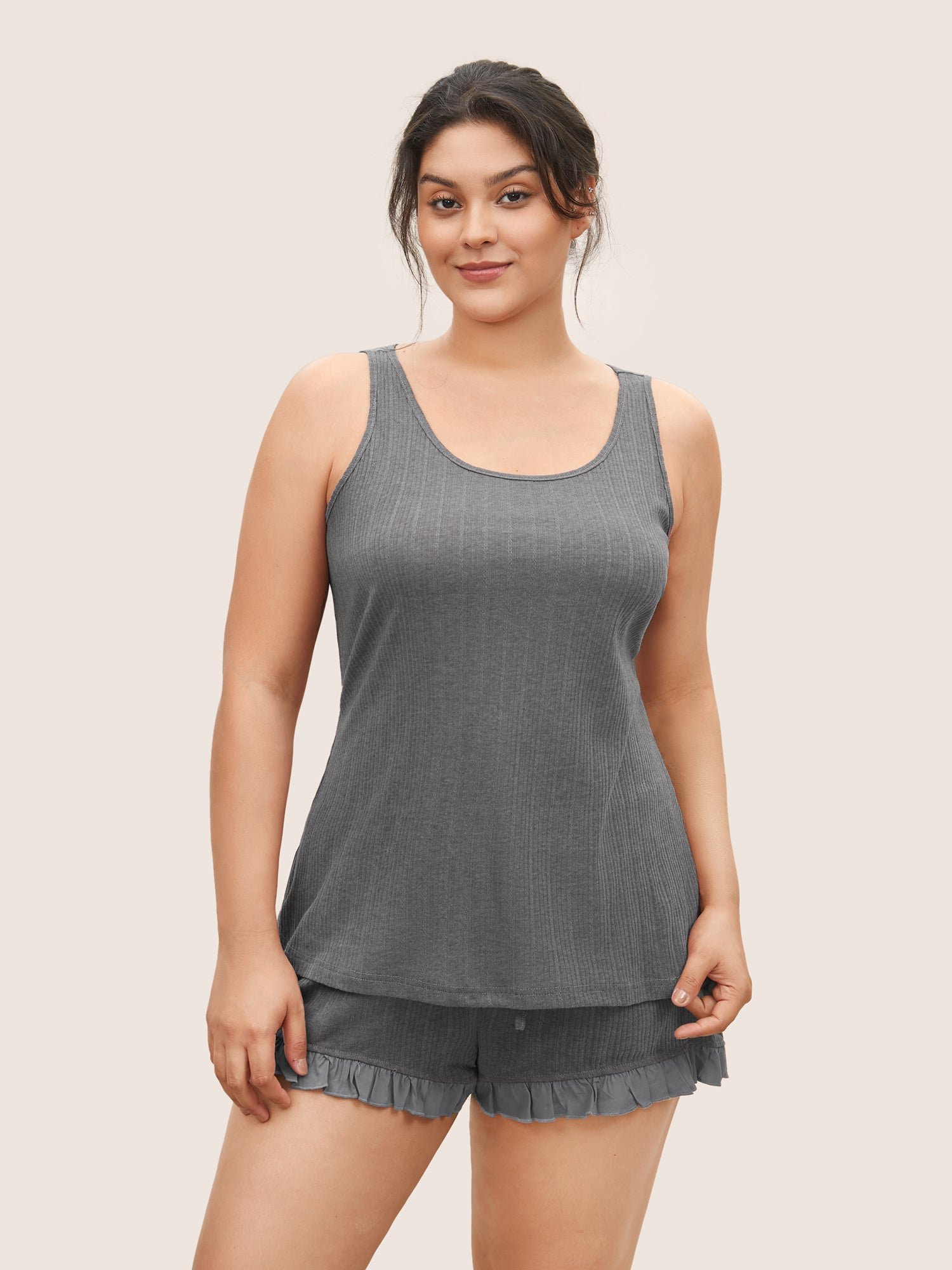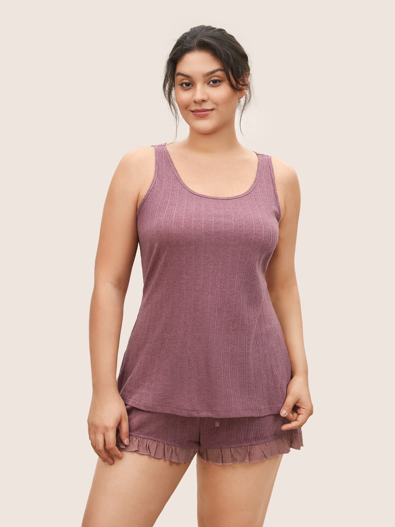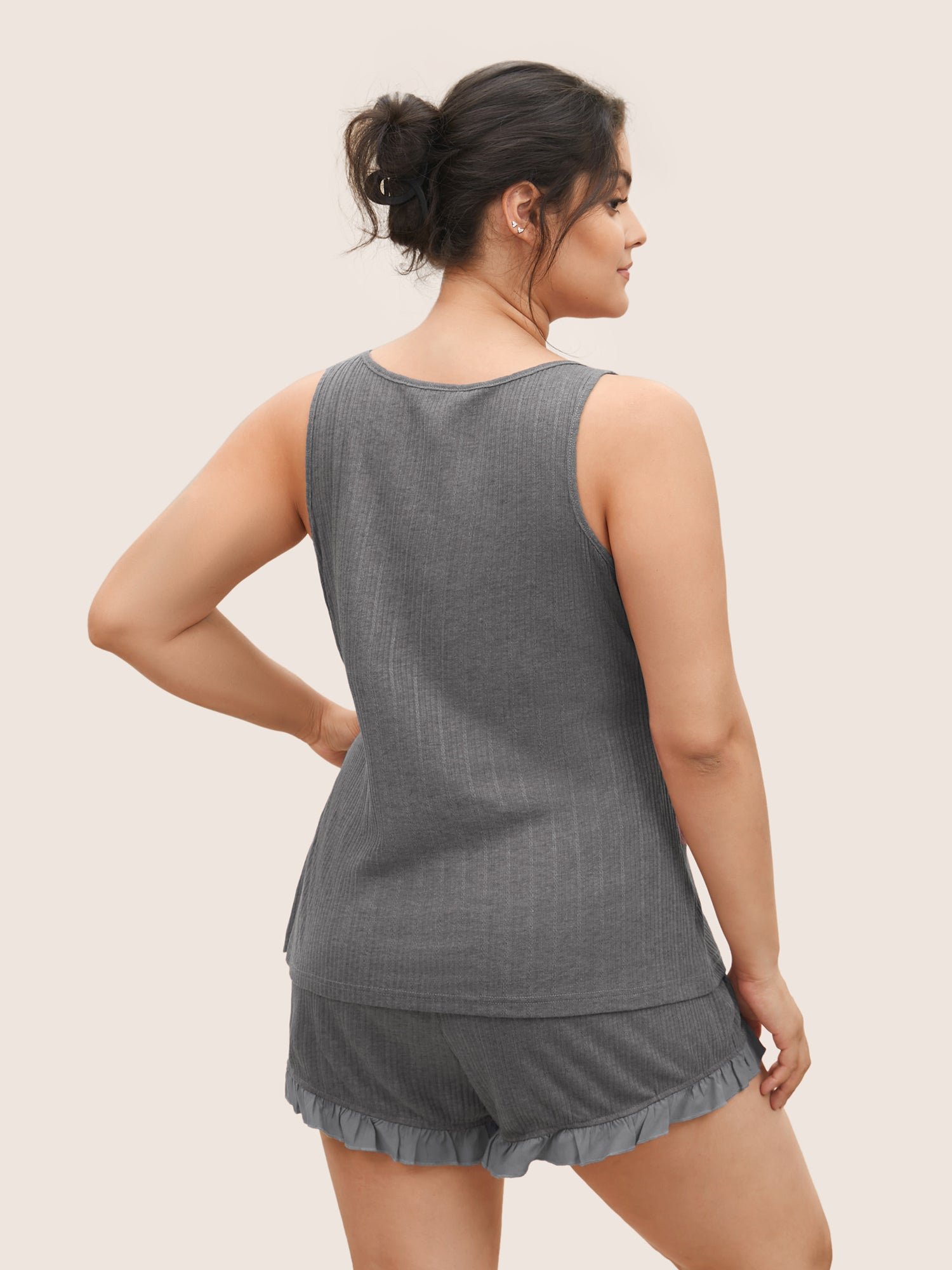 Texture Patchwork Ruffles Drawstring Loungewear Set